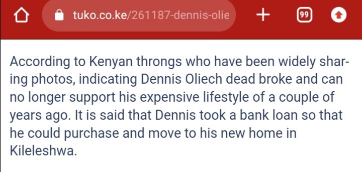 Kenyan mobs who have been widely disseminating images claim Dennis Oliech is broke and can no longer afford to maintain his luxurious lifestyle of a few years ago. According to reports, Dennis obtained a bank loan so he could buy and relocate to his new house in Kileleshwa.