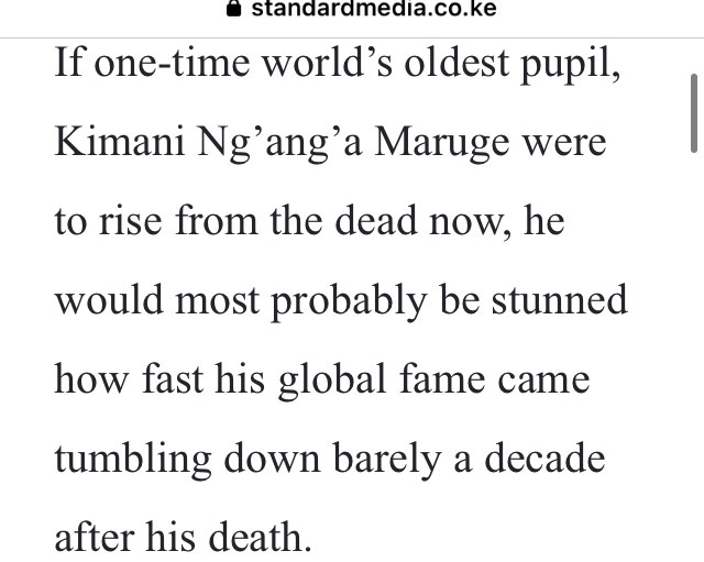 Maruge was a man of “means, authority, and power” when he attracted the interest of significant local and international organizations and figures at the time of his death at the age of 90. He had advanced to become the most renowned octogenarian among his generation.