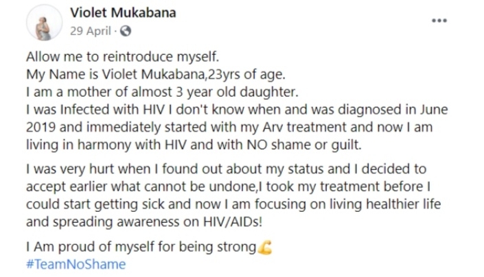 A 25-year-old woman named Violet Mukabana, who has had HIV for three years, uses her social media channels to promote the battle against stigmatization of HIV patients.