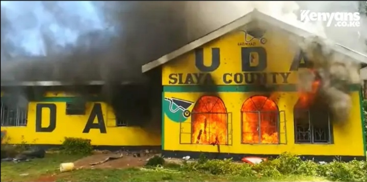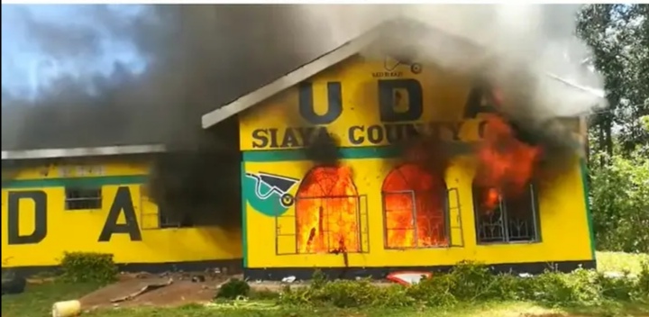 This as Protesters have set ablaze UDA offices in Siaya county Amid nation wide demonstrations led by former prime minister Raila Odinga.